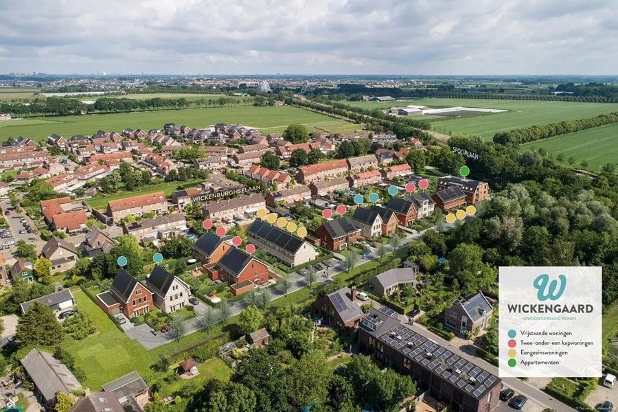 Wonen in Wickengaard betekent wonen in een dorpse sfeer. Genieten van warmte, gezelligheid, schoonheid en ruimte om je heen. Het pittoreske lintdorp ligt langs de Schalkwijkse Wetering op het Eiland van Schalkwijk in het Kromme Rijngebied. Je woont hier midden tussen de groene weilanden en dicht bij fruitboomgaarden, waar je in bloesemtijd de meest romantische fietstochten maakt. Je geniet van de weidse uitzichten, het grootse rivierenlandschap en de historische omgeving.